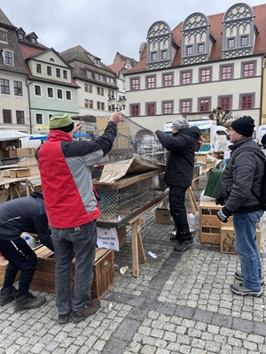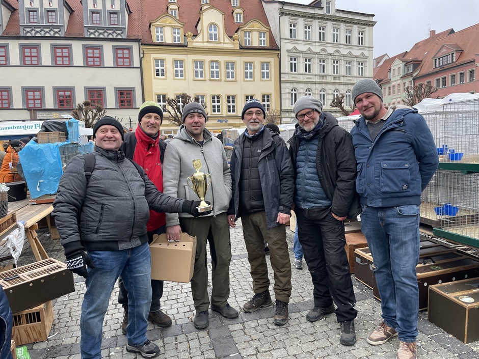 Leider fand in 2026 wieder nur ein Markt statt, diese veranlasste uns im Vorfeld auch entsprechende Kritik mit den Organisatoren zu üben, stellt doch dieser Traditionsmarkt ein Höhepunkt zu Beginn des Taubenjahres seit 160 jahren dar. Wir reisten am 14.02. mit einigen Mitgliedern und unseren Präsentationskäfigen an und wurden überraschend zur öffiziellen Eröffnungsfeier ins Rathaus durch den Bürgermeister geladen.