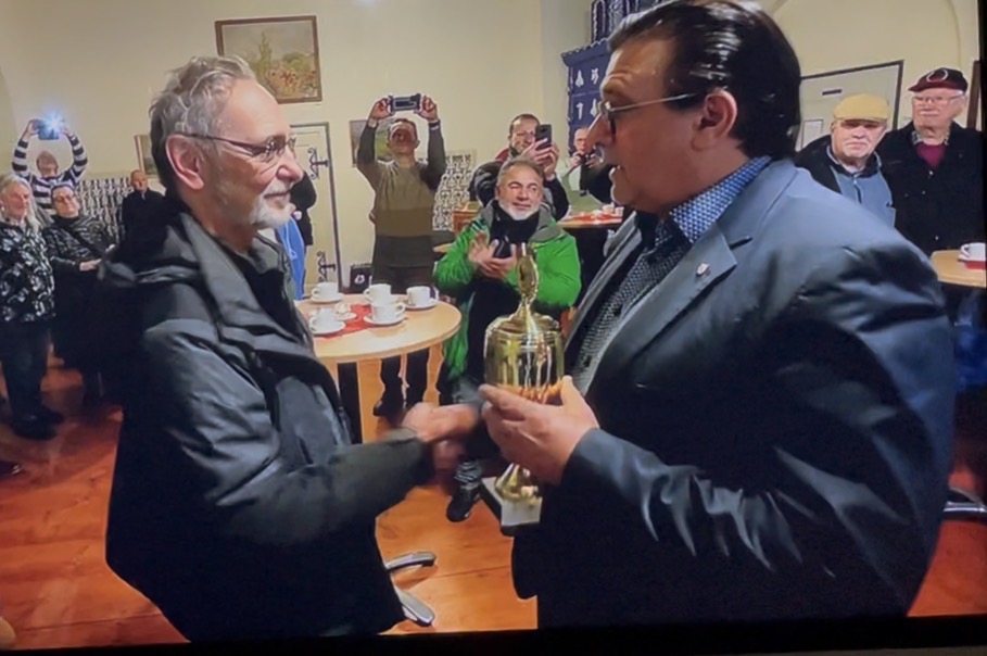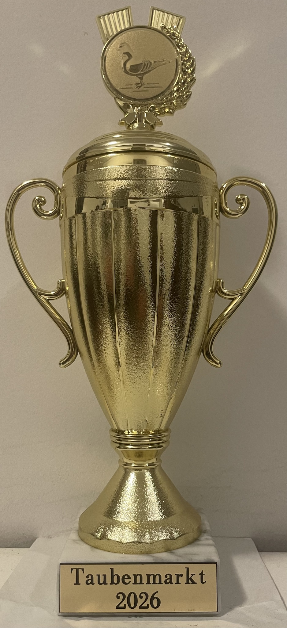 Nach einer Laudatio über unsere erfolgreiche ehrenamtliche Arbeit auf dem Gebiet der Flugtaubenzucht und Präsentation und dem Engagement für die Erhaltung unseres schönen Hobbys überreichte der Bürgermeister unserem Vorsitzenden Dr.Martin Pestel den Pokal des Taubenmarktes 2026. Diese Würdigung nahmen wir gerne an und werden uns auch weiterhin für die Erhaltung unserer Flugrassen einsetzen.